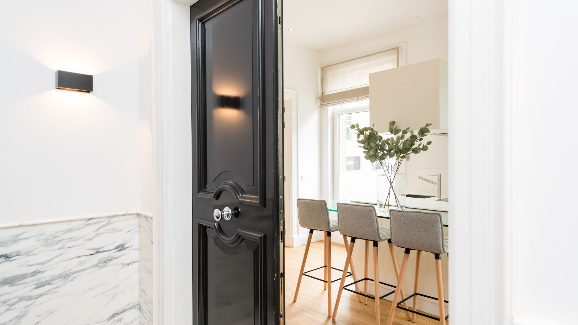 The building boasts an impressive marble entrance hall and beautiful lacquered wooden doors to each apartment.